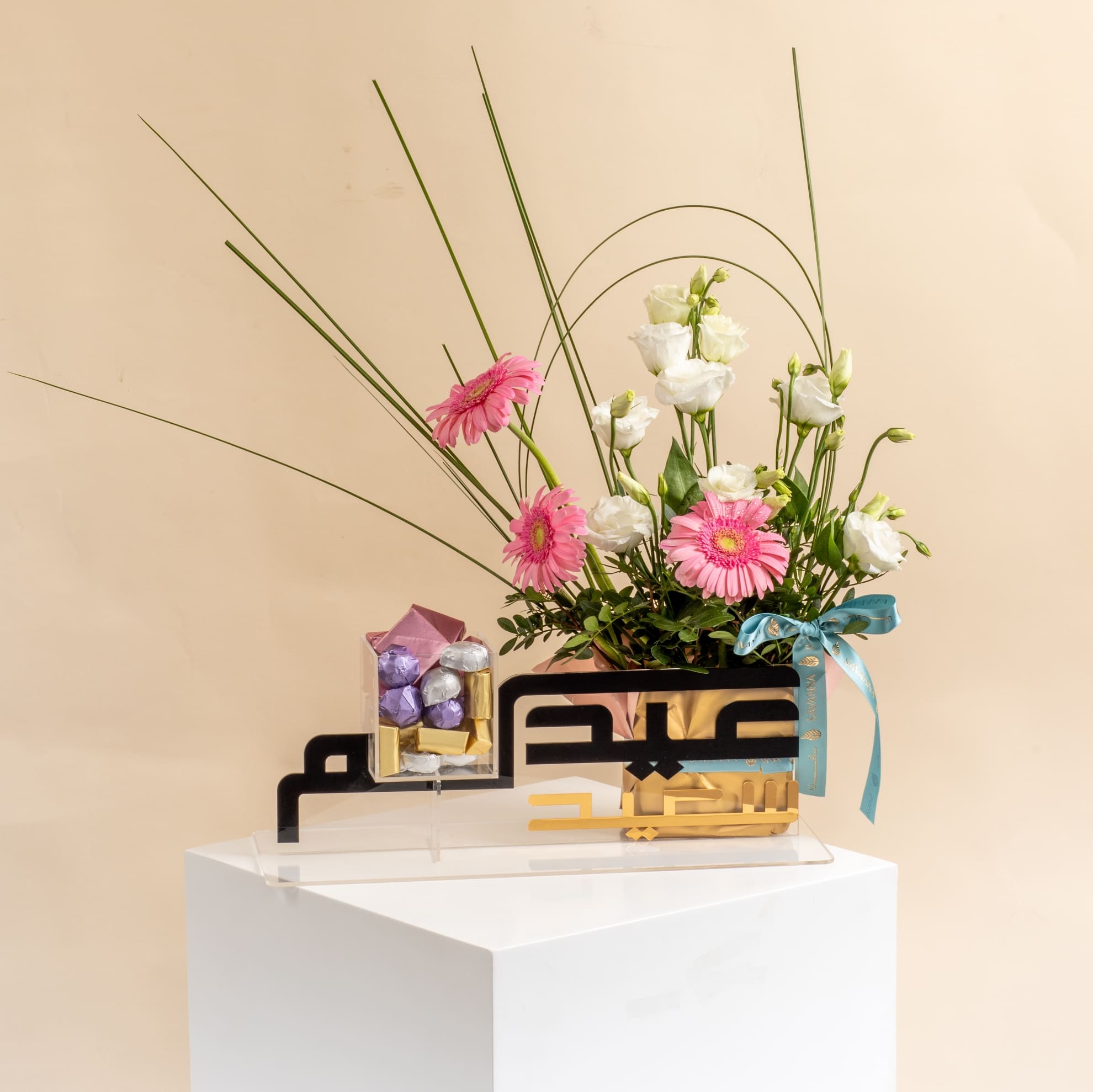 Eid Mubarak Chocolate Tray – Celebrate Eid with a perfect blend of sweetness and beauty! This tray contains 20 pieces of premium chocolate,pistachio filling , hazelnut , crunched almond , milk chocolate and mix nuts ,coconut . A perfect gift to share the festive joy. Available now at Savanna Boutique!