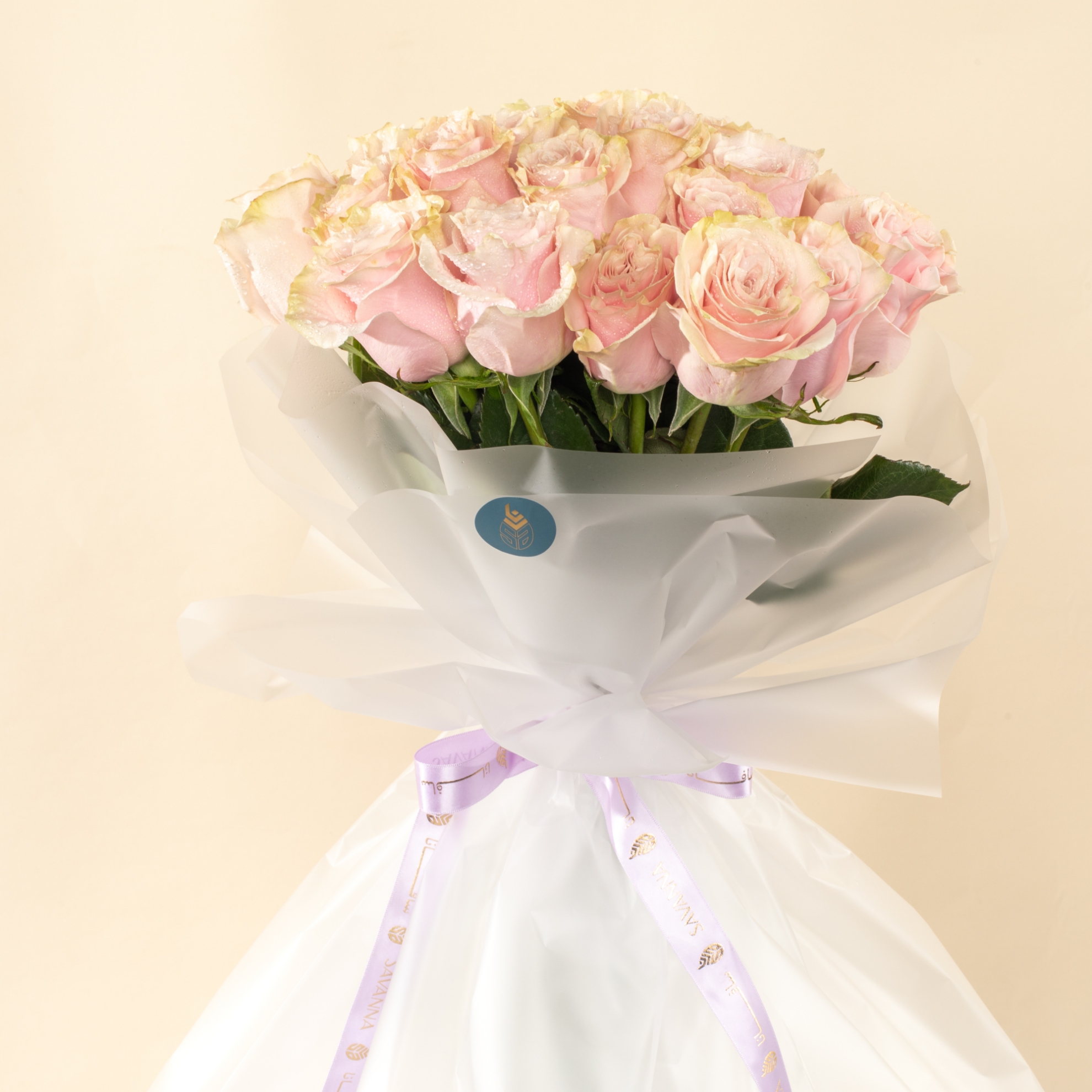 20 Pink Roses Hand BouquetA beautiful hand bouquet of 20 pink roses, wrapped in elegant white. Soft, romantic, and perfect for expressing love, gratitude, or celebration.