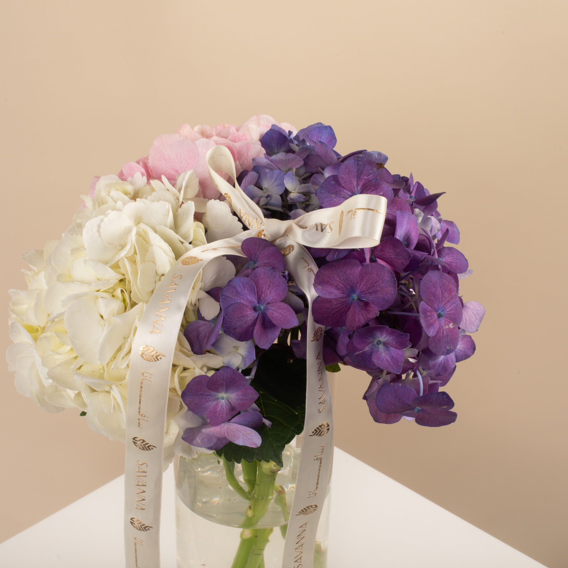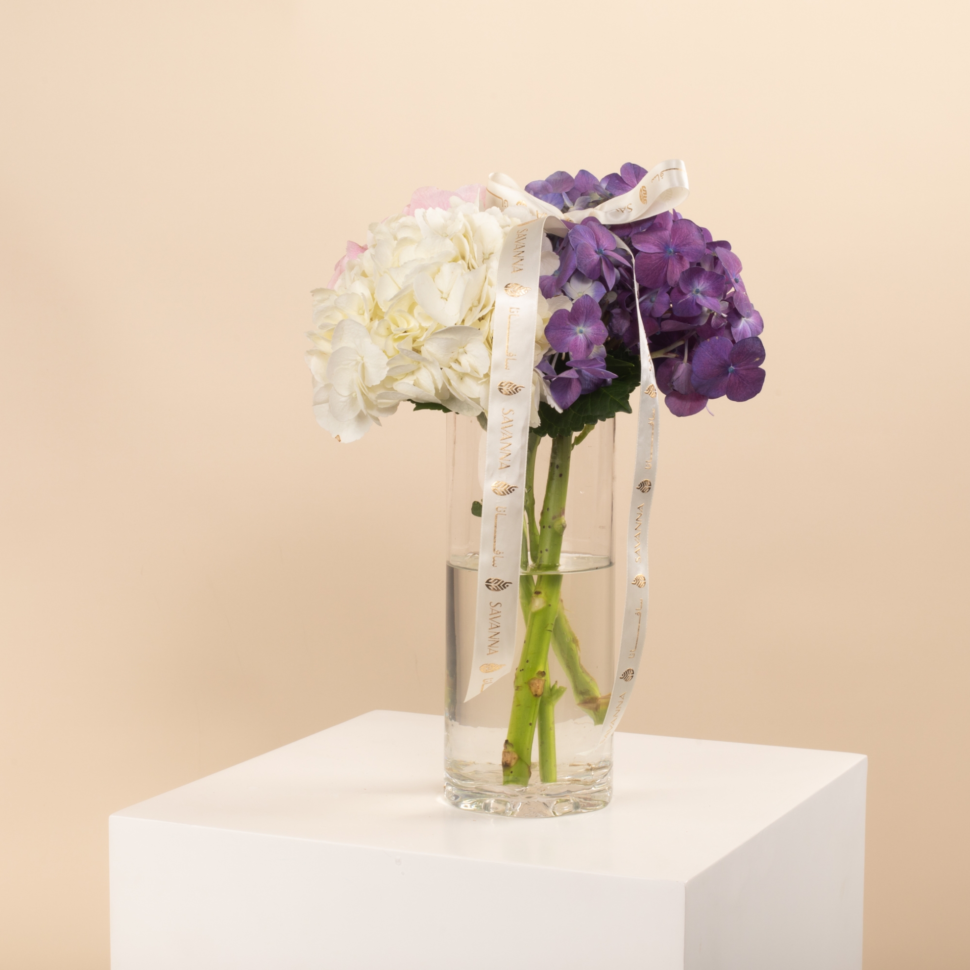 Savanna Birthday Hydrangea Vase – a joyful arrangement of vibrant Hydrangeas beautifully displayed in a clear glass vase, specially designed to celebrate birthdays with elegance and charm. A perfect gift to brighten someone’s special day. Order now on Savanna and make their birthday bloom with beauty