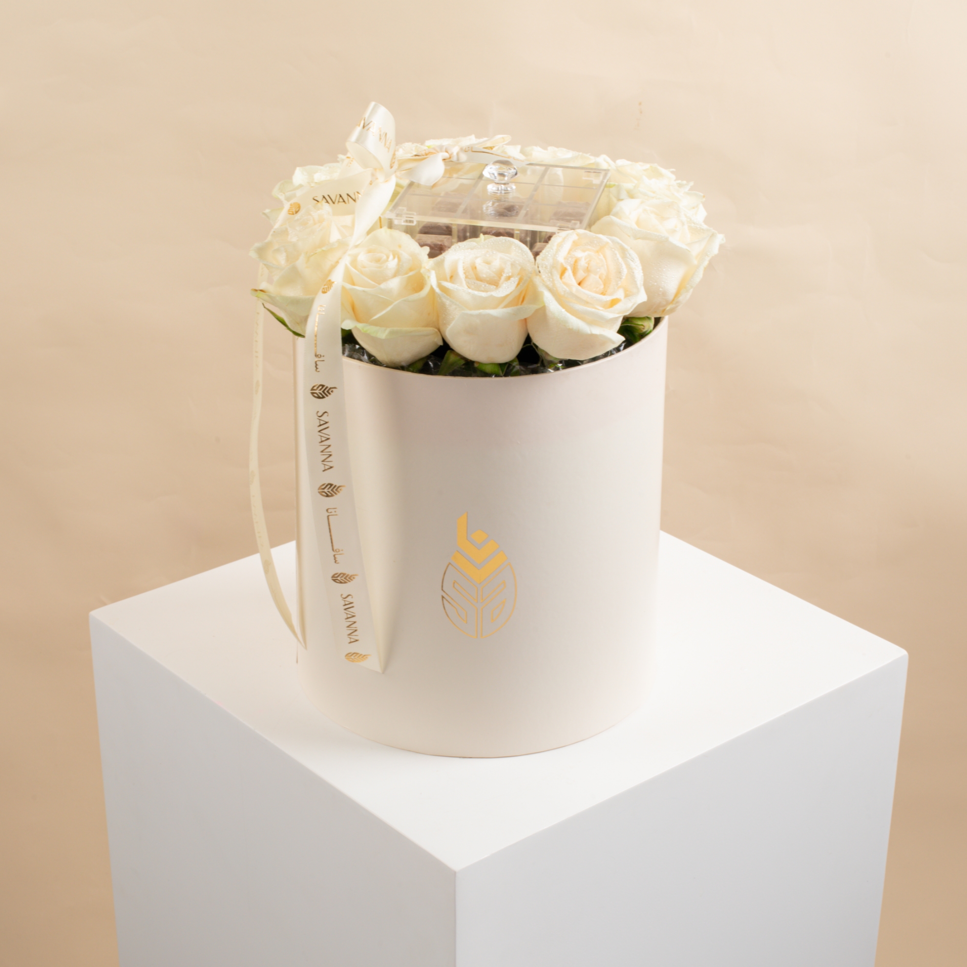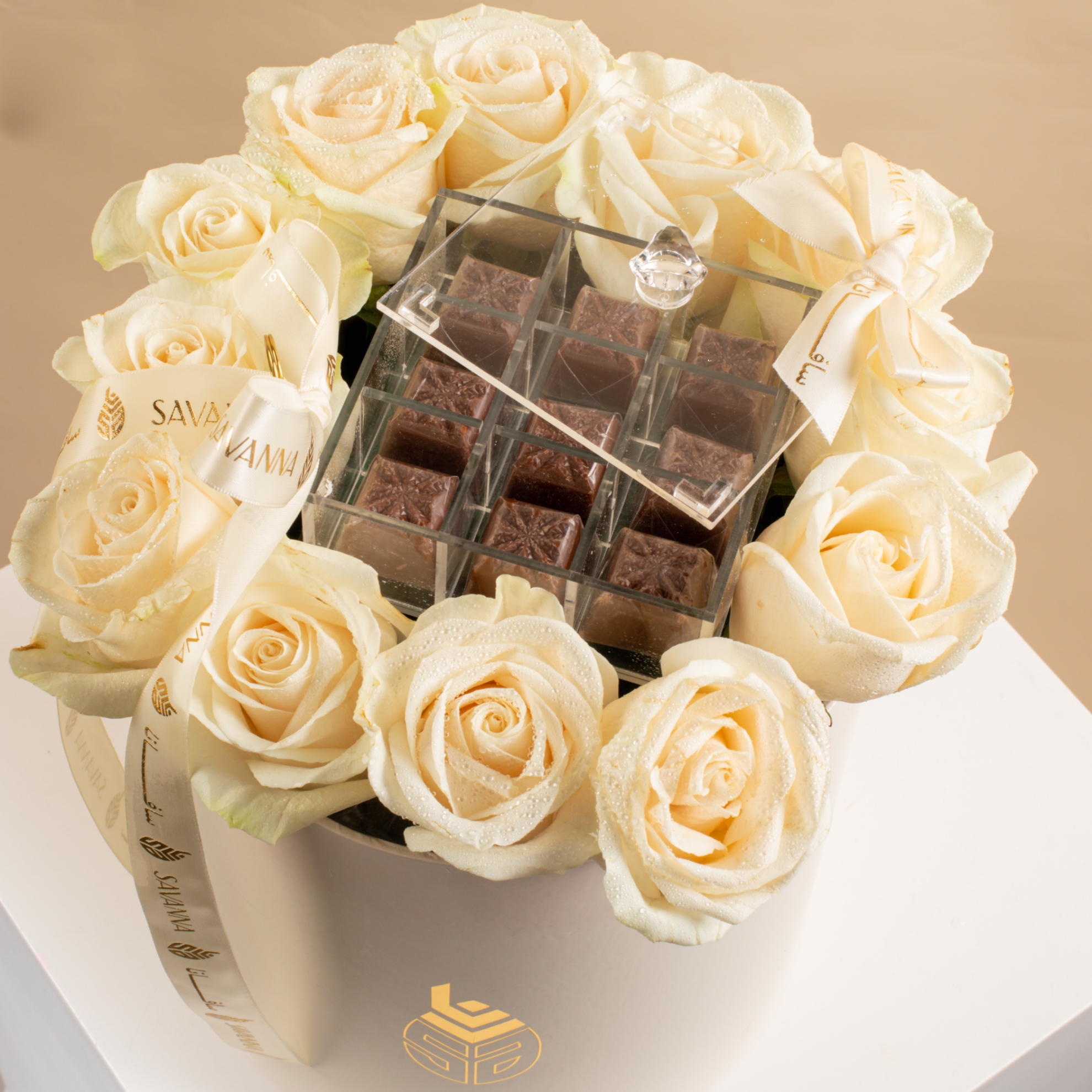 A graceful flower box with pure white roses and 9 pieces of rich chocolate. Elegant, timeless, and perfect for heartfelt gifting on any occasion.