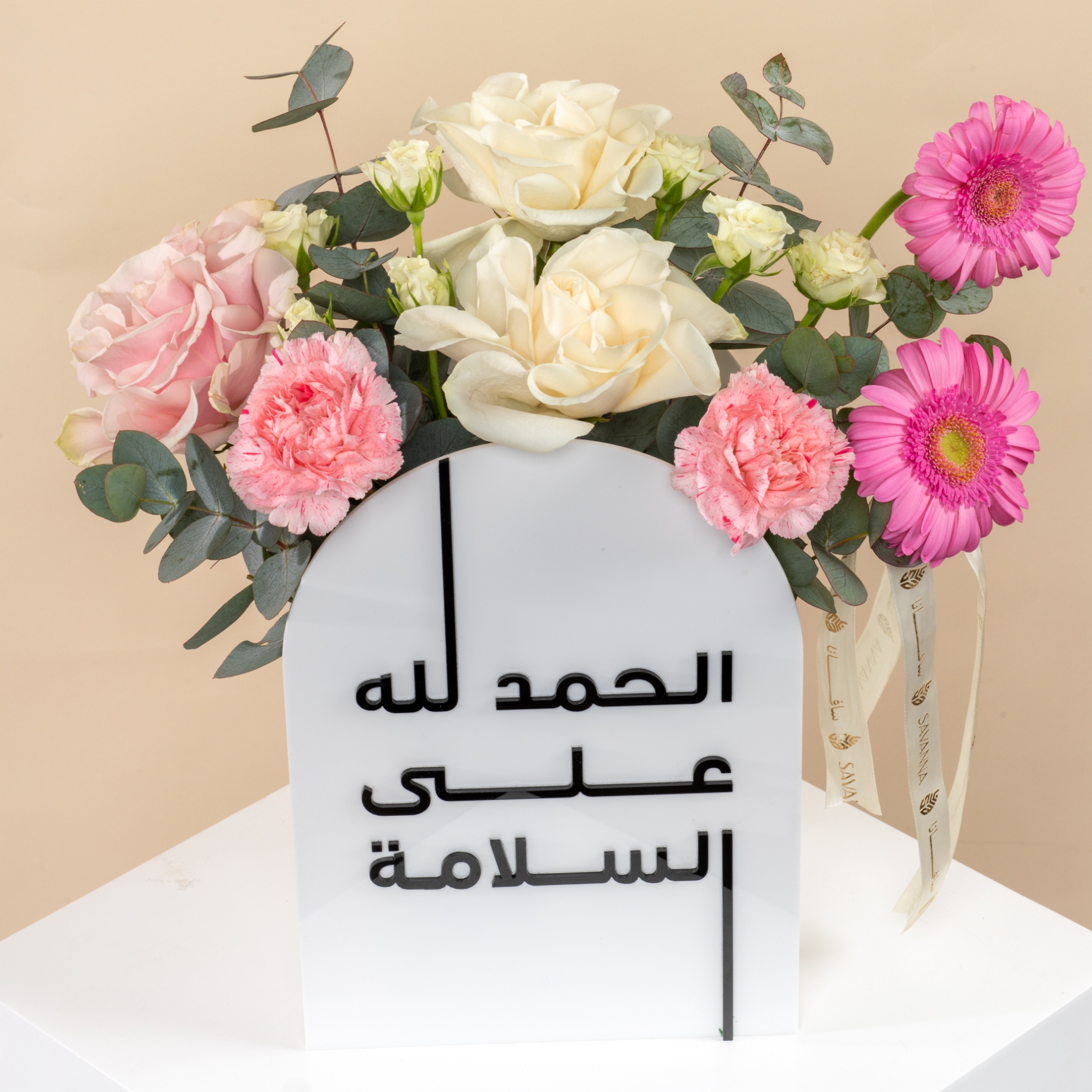 Get Well Soon Flowers BoxA comforting arrangement of white roses, pink roses, pink carnations, and pink gerbera — designed to lift spirits and bring a touch of warmth and care.