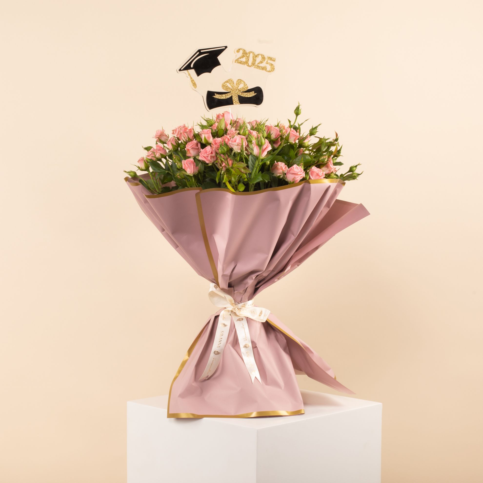 Celebrate graduation with our Hand Bouquet featuring 12 Pink Baby Roses! This charming bouquet symbolizes admiration, love, and success. A perfect gift to make their graduation day even more special. Order now and add a touch of elegance and warmth to their celebration!
