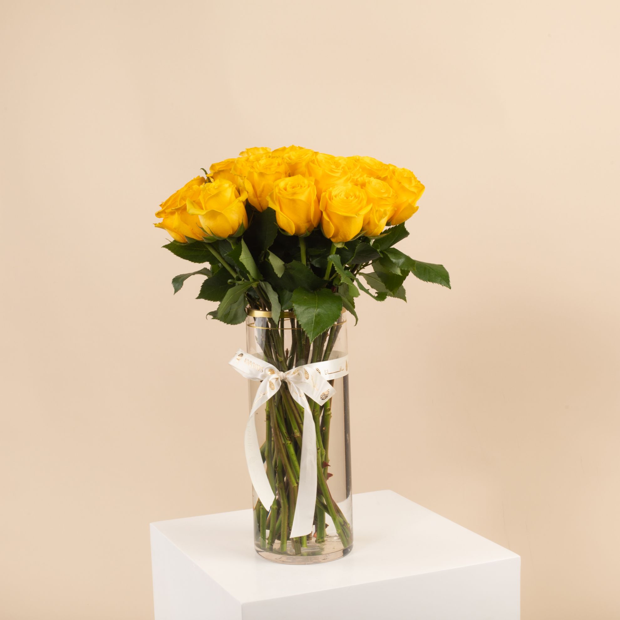 Celebrate graduation with our Glass Vase featuring 25 Yellow Roses! This vibrant arrangement symbolizes joy, success, and new beginnings. A perfect gift to brighten their special day with elegance and positivity. Order now and make their graduation unforgettable!