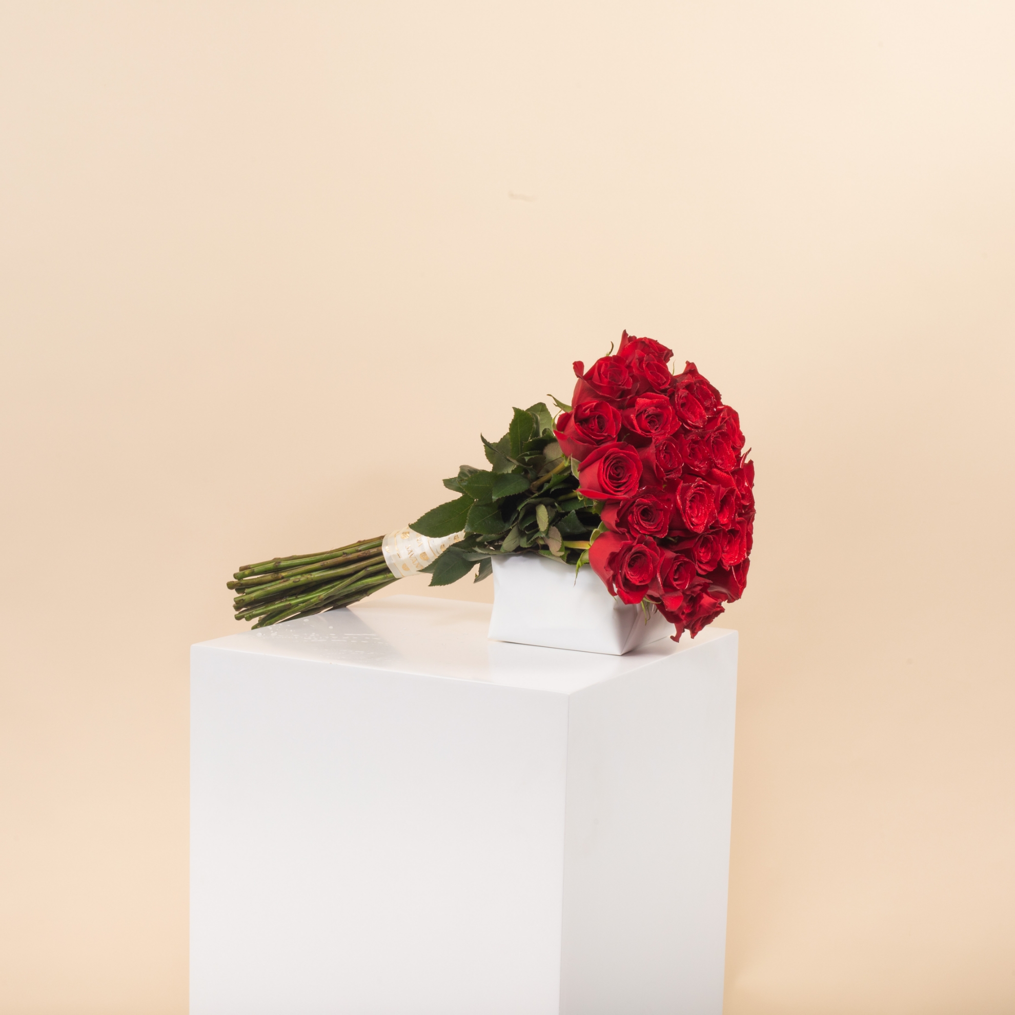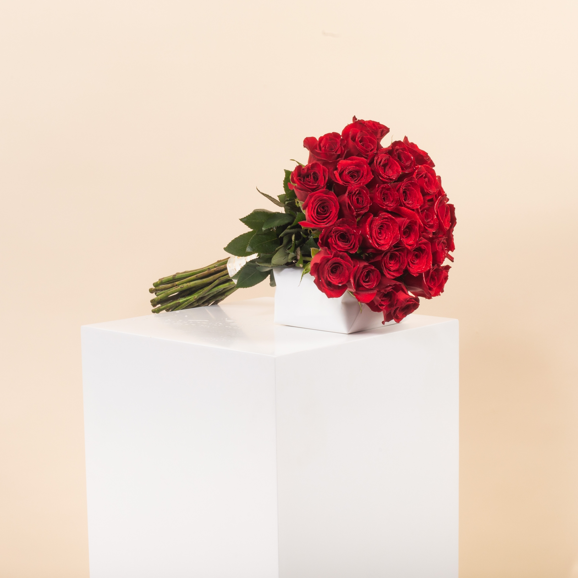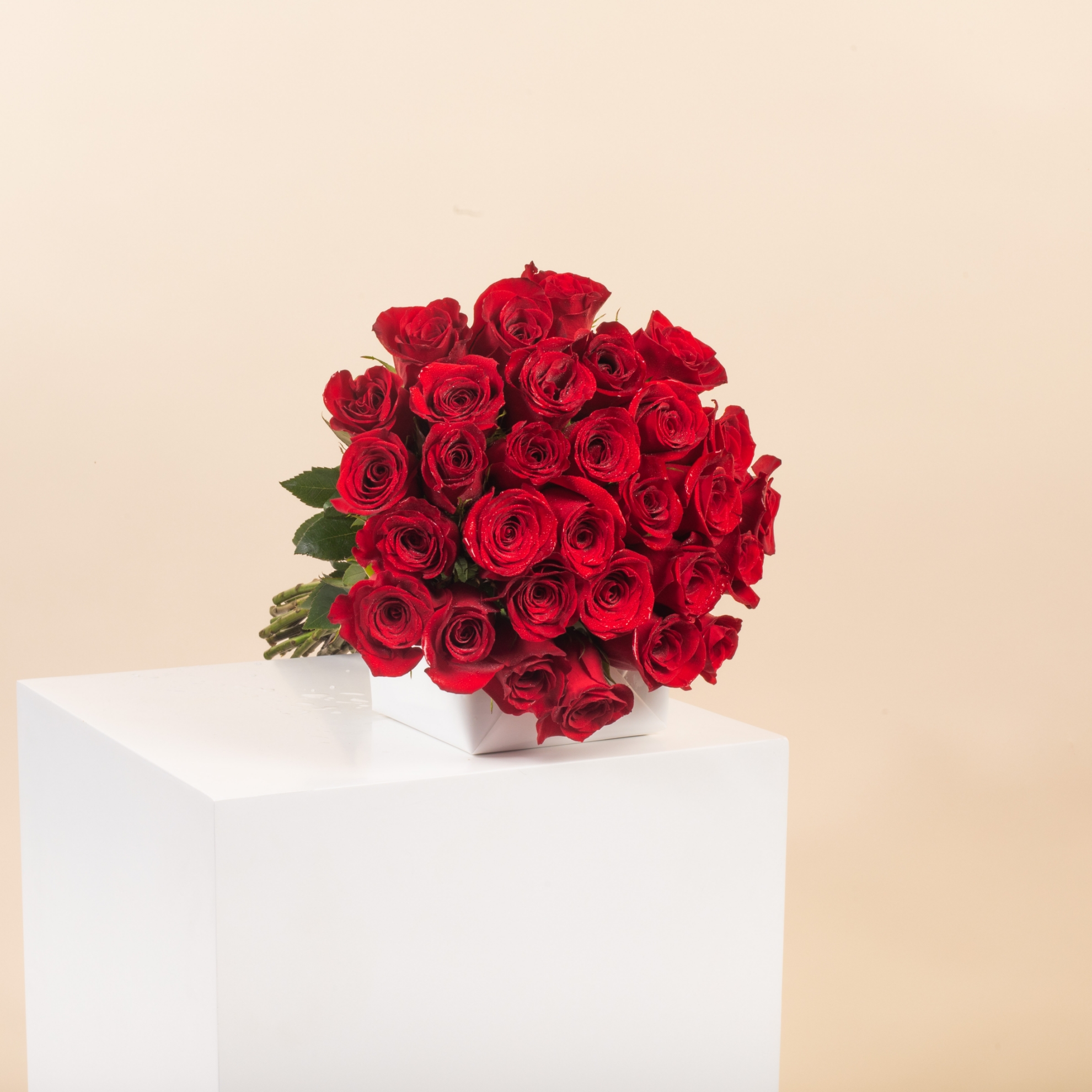 Express your deepest emotions with this stunning bouquet of 30 premium red roses, carefully selected to symbolize love, passion, and elegance. Perfect for any special moment that deserves a grand gesture.