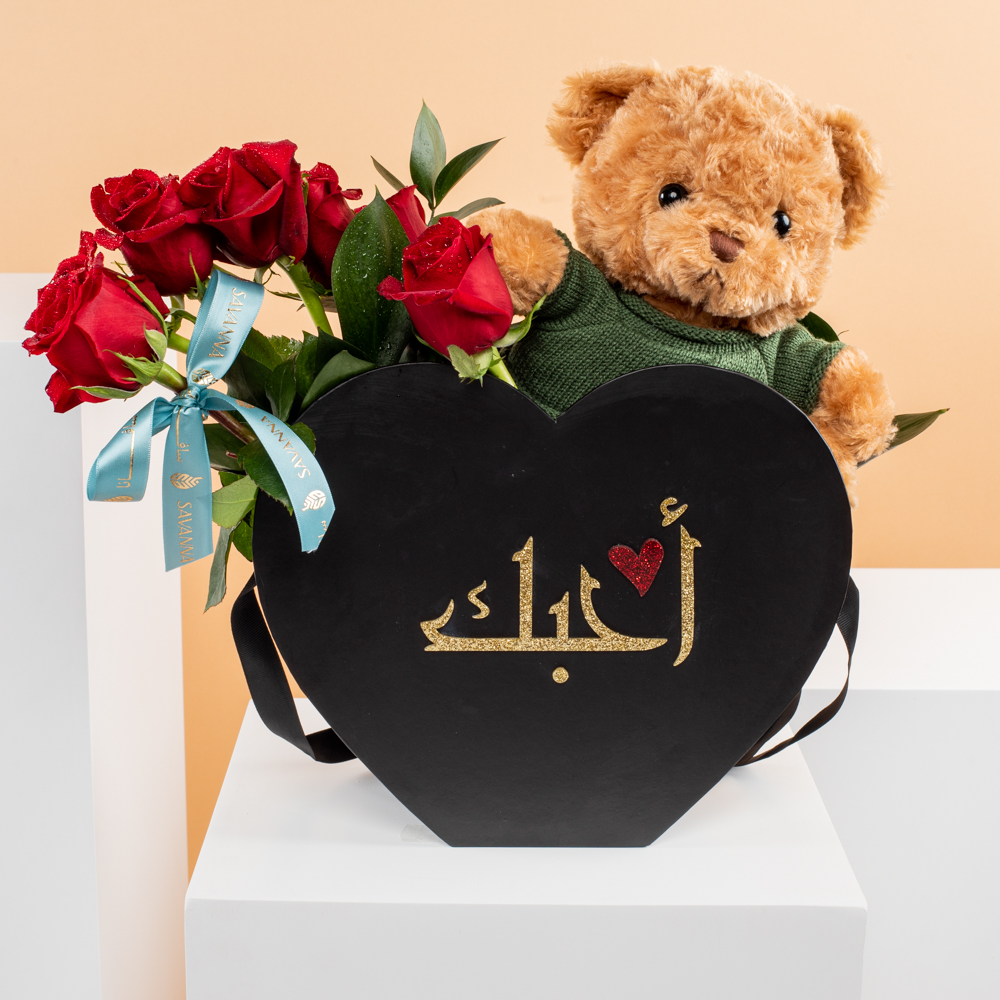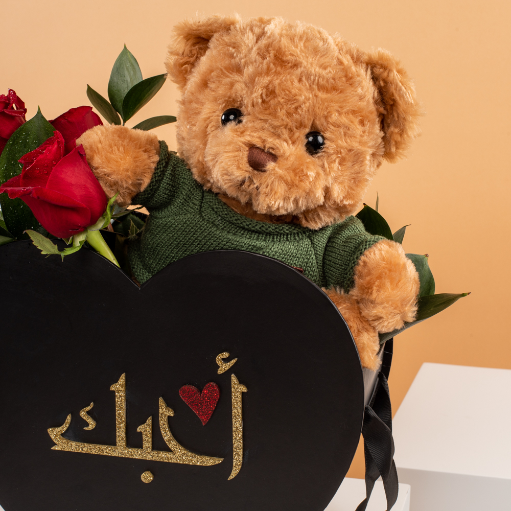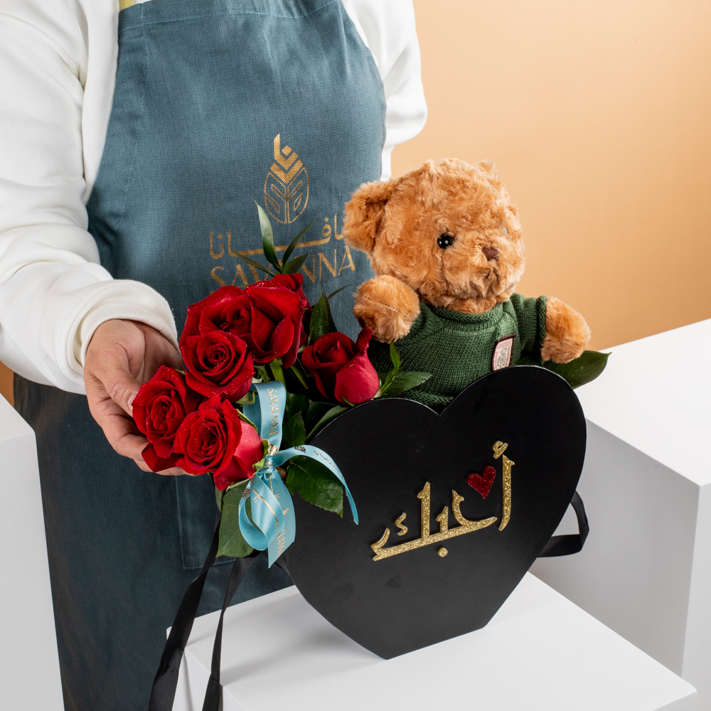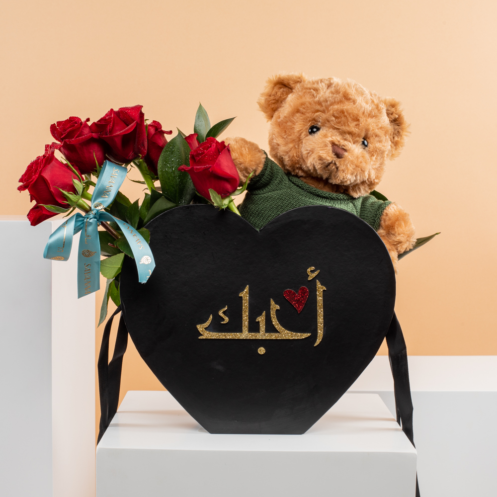 Surprise Your Loved One With The Perfect Gift! Our Heart Black Box Includes A Soft Brown Teddy Bear, A Vibrant Red Rose, And Elegant Ruscus, All Paired With A Heartfelt "I Love You" Message. A Beautiful Gesture For Any Occasion—Shop Now On Savanna And Make Their Day Unforgettable!