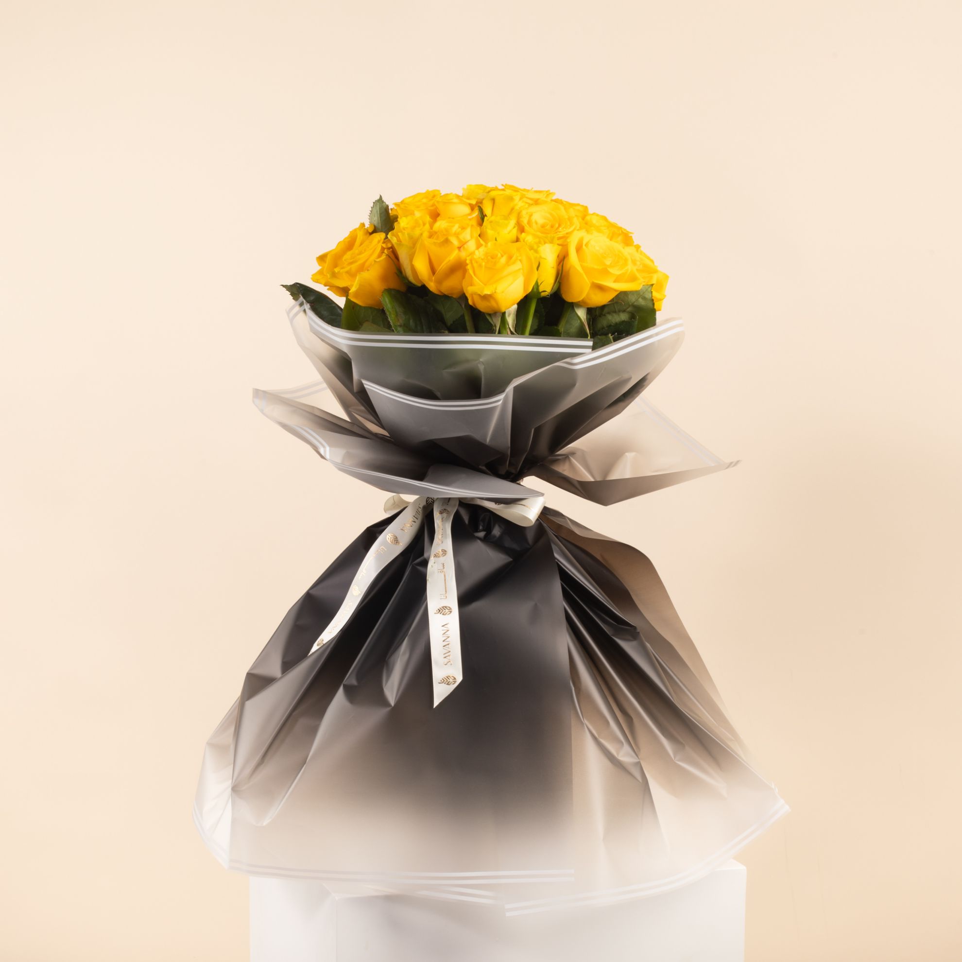 Brighten any day with our Yellow Rose Hand Bouquet — 35 vibrant roses elegantly wrapped to inspire joy and positivity. Available now exclusively on Savanna.