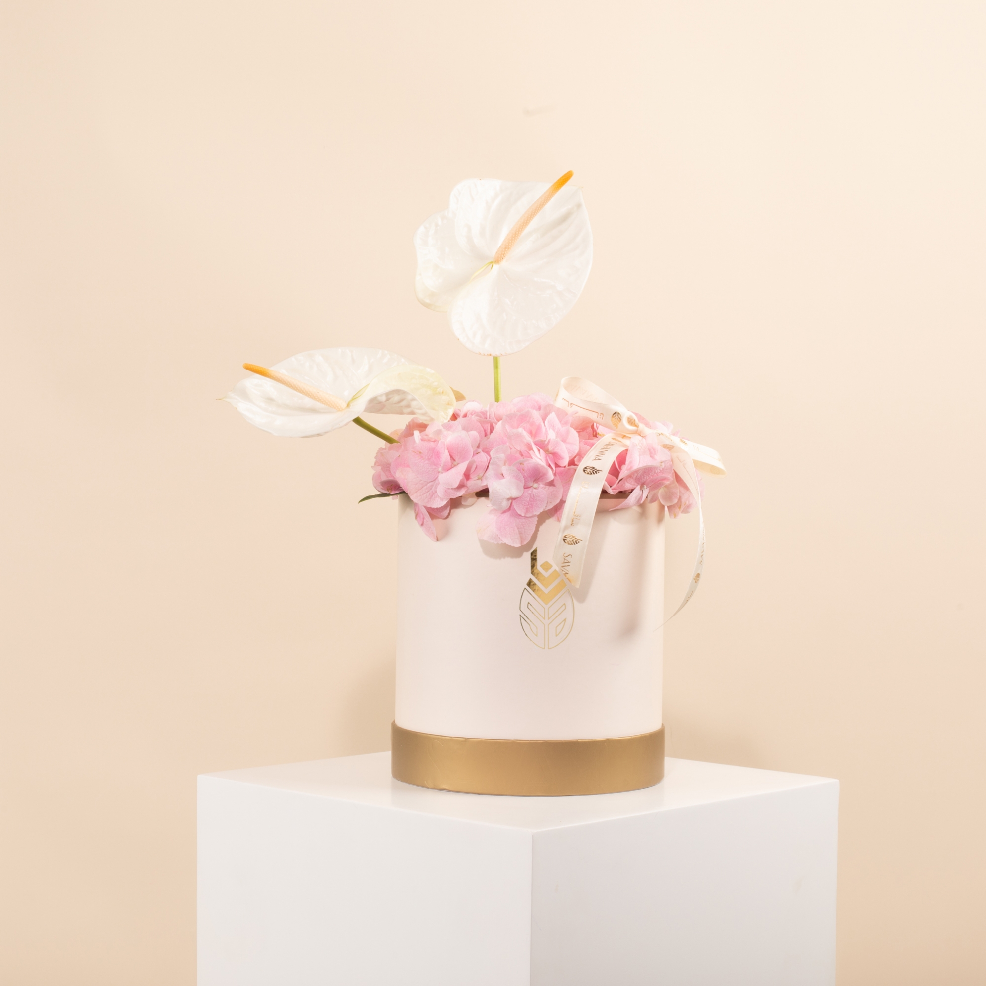 Savanna flowers box featuring a stunning arrangement of pink hydrangeas and white anthuriums – a perfect blend of elegance and beauty. This luxurious box is ideal for any occasion, adding a touch of sophistication and charm. Order now on savanna and surprise someone special with nature’s finest!