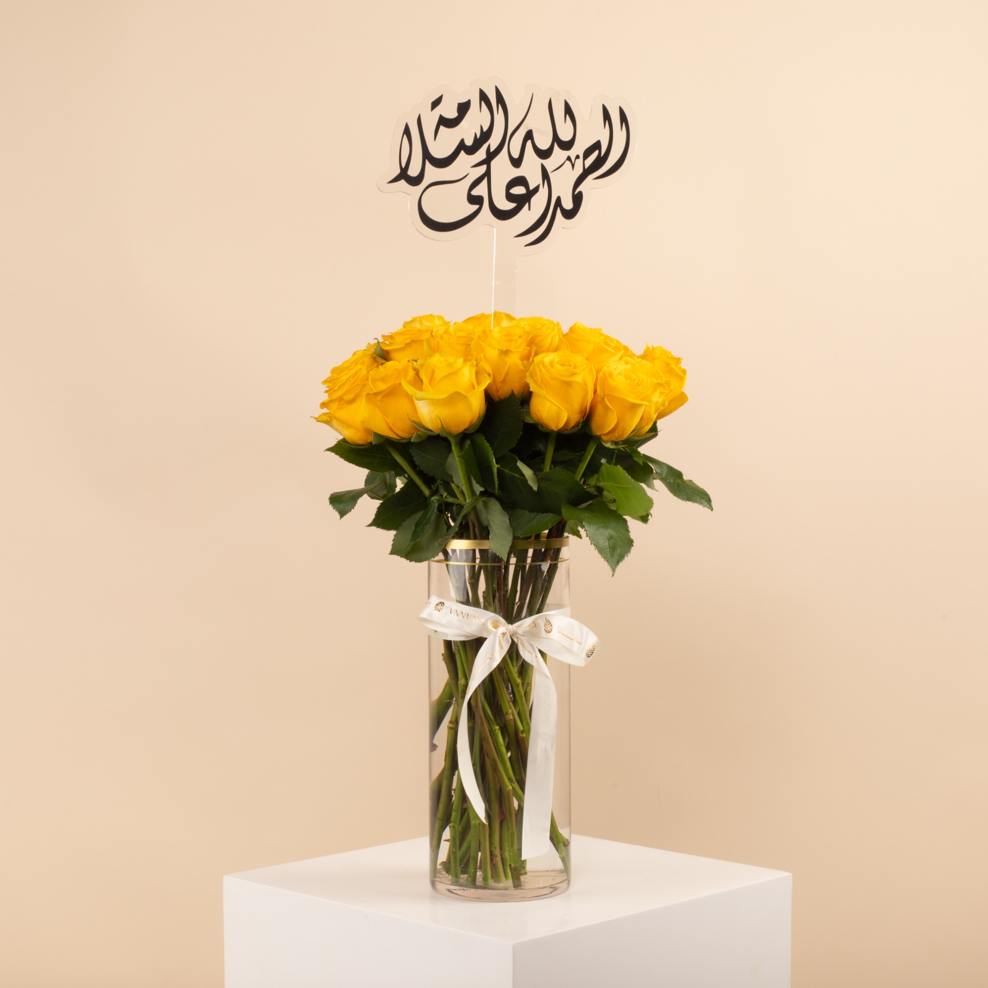 Savanna flowers vase featuring 25 vibrant yellow roses elegantly arranged in a clear glass vase – a symbol of friendship, joy, and positivity. Perfect for brightening any room or as a thoughtful gift. Order now on savanna and spread sunshine with every bloom!