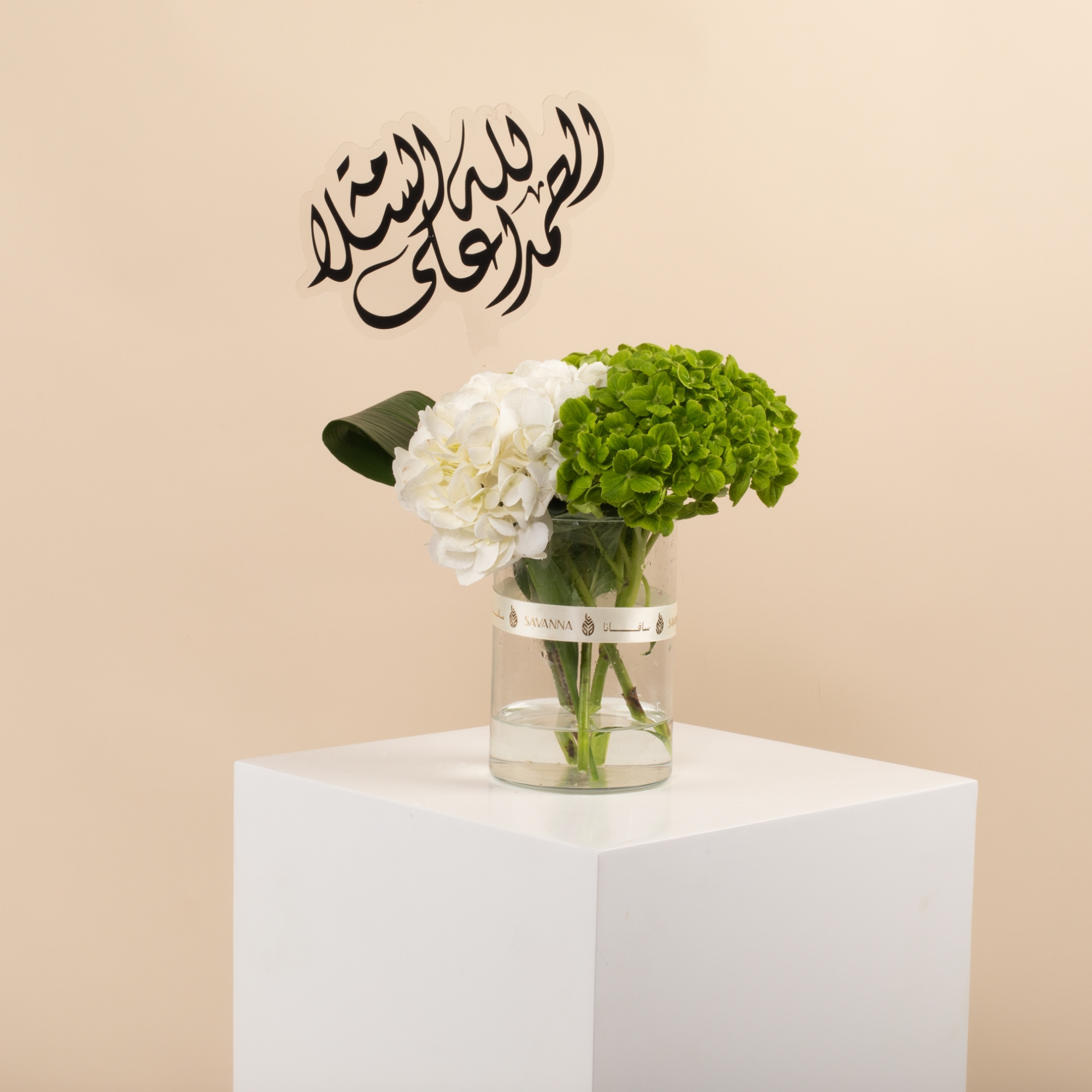Savanna flowers vase featuring a stunning arrangement of green and white hydrangeas in a clear glass vase – a perfect blend of elegance and freshness. Ideal for adding a serene touch to any space or as a thoughtful gift. Order now on savanna and bring natural beauty into your home!