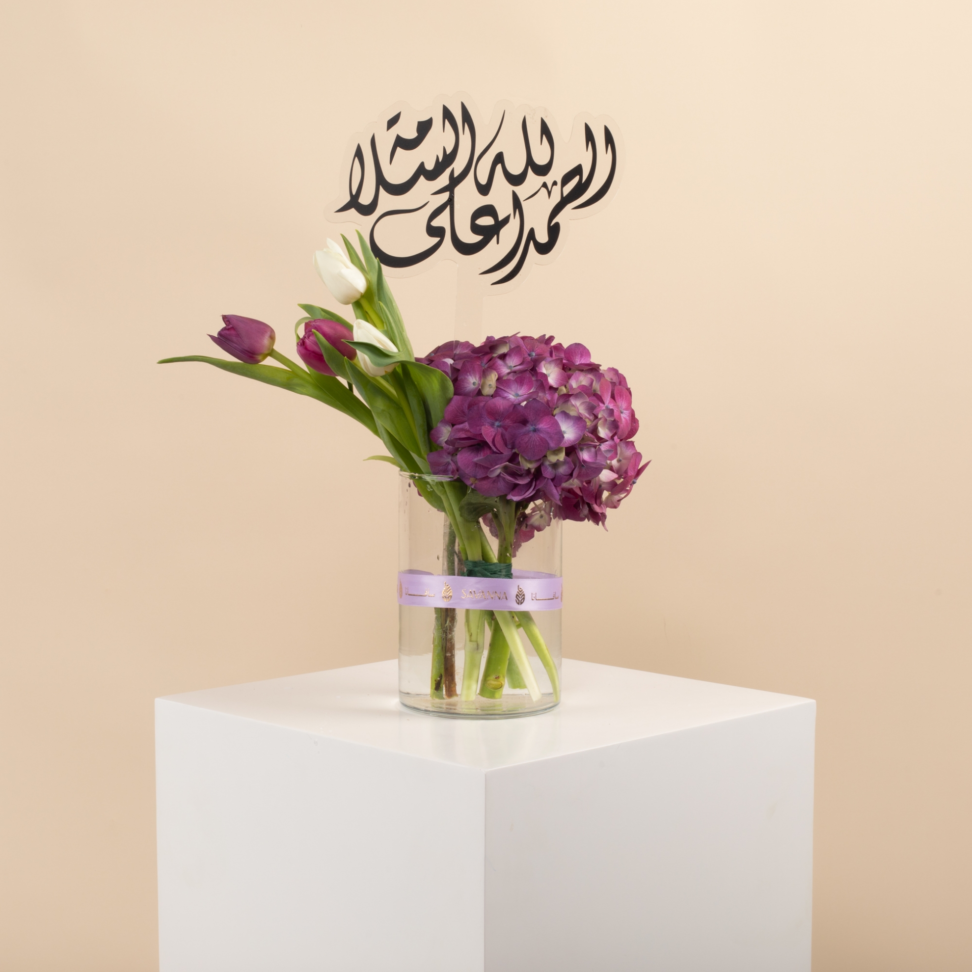 Savanna flowers vase featuring a beautiful mix of purple tulips and purple hydrangeas elegantly arranged in a clear glass vase – a perfect combination of grace and vibrancy. Ideal for any occasion or as a thoughtful gift. Order now on savanna and brighten any space with floral beauty!