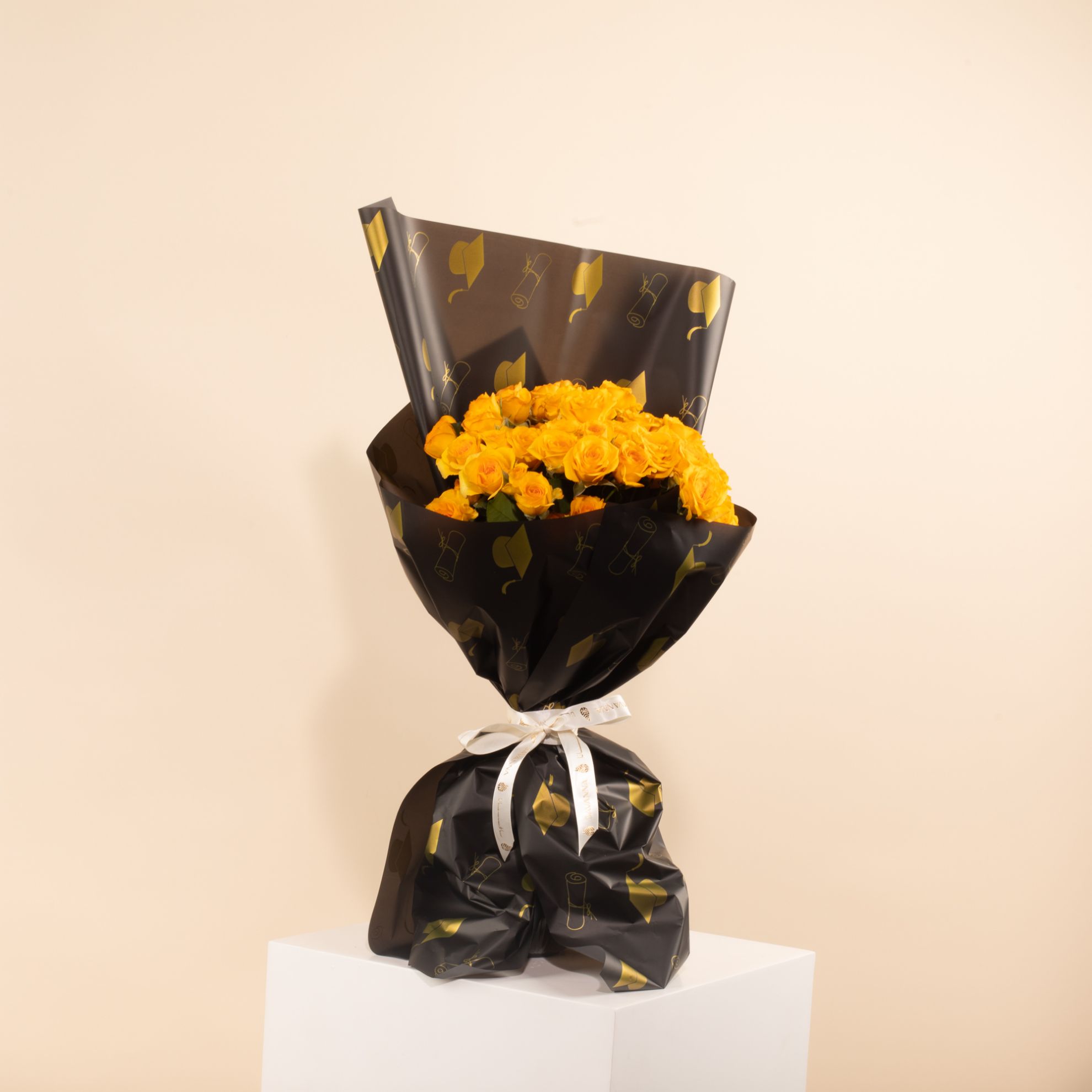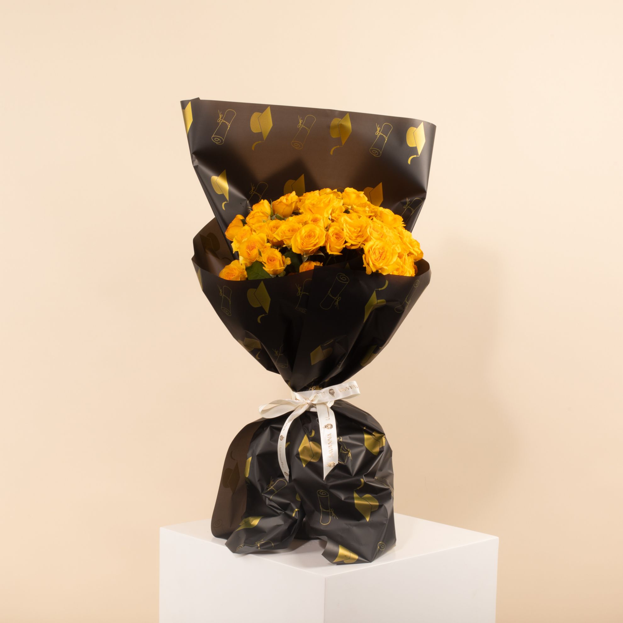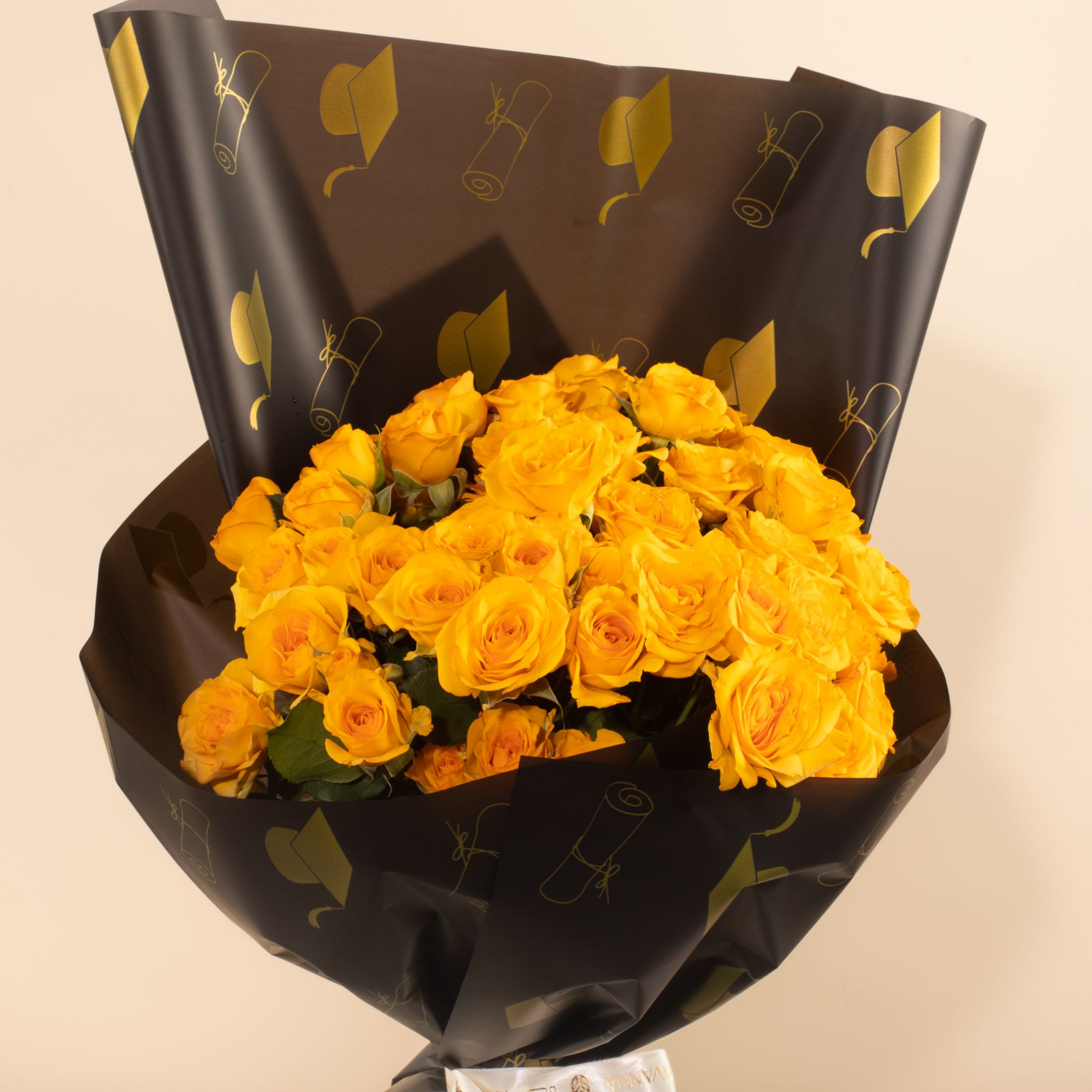 Celebrate graduation with our Hand Bouquet featuring 12 Yellow Baby Roses! This cheerful bouquet symbolizes joy, success, and new beginnings. A perfect gift to add a burst of color and positivity to their special day. Order now and make their graduation even more memorable!
