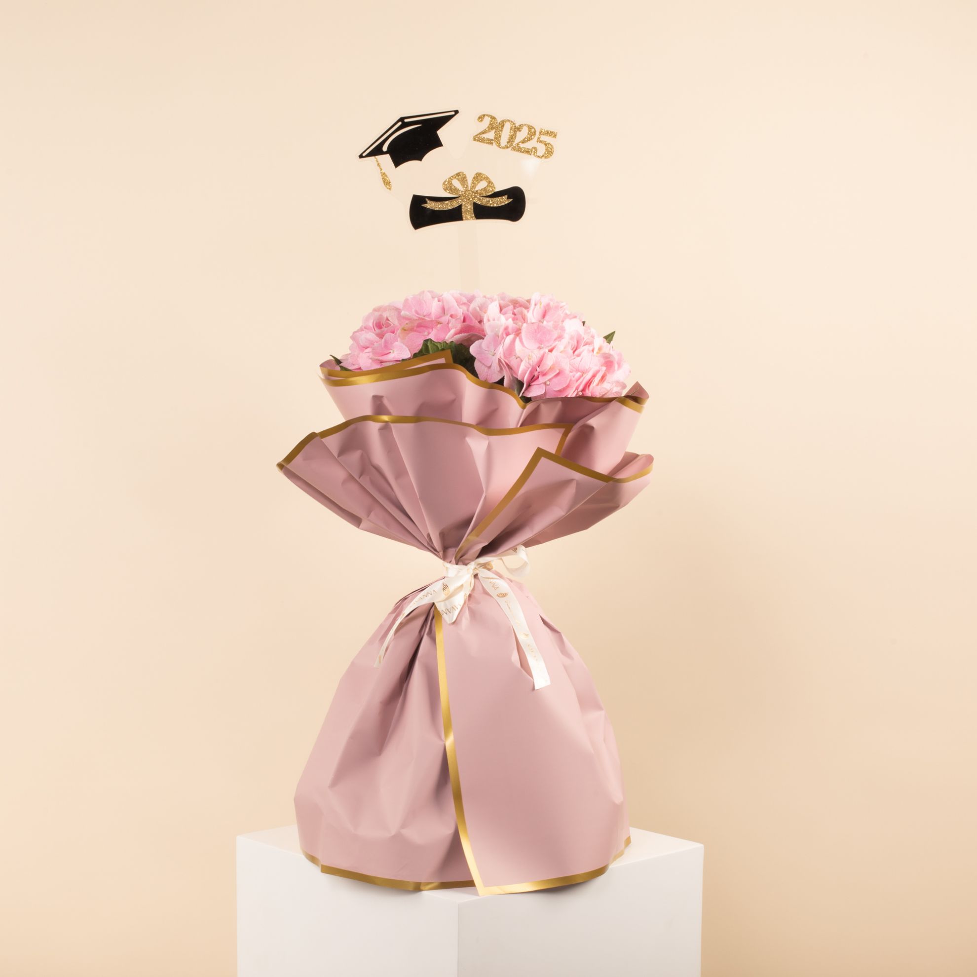 Celebrate graduation with our Hand Bouquet featuring 3 Pink Hydrangeas! This delicate and elegant bouquet symbolizes gratitude, beauty, and new beginnings. A perfect gift to mark their special achievement with grace. Order now and make their graduation day even more memorable!