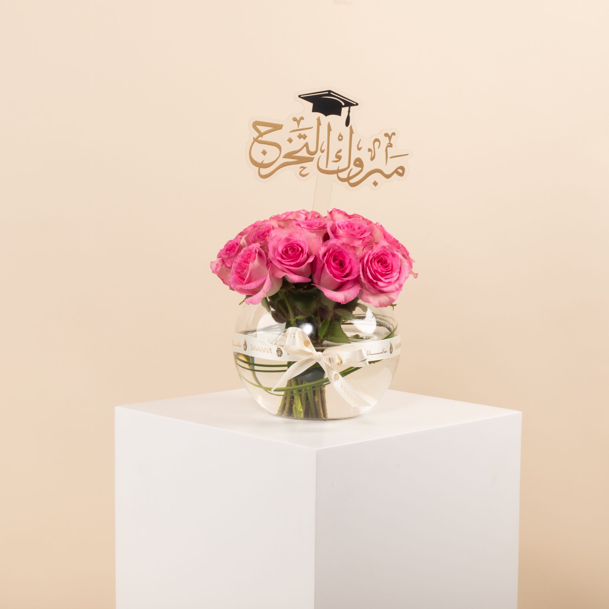 Celebrate graduation with our Glass Vase featuring 20 Fuchsia Roses! This stunning arrangement adds a pop of vibrant color, symbolizing admiration and success. A perfect gift to honor their achievement with elegance and style. Order now and make their graduation day even more special!