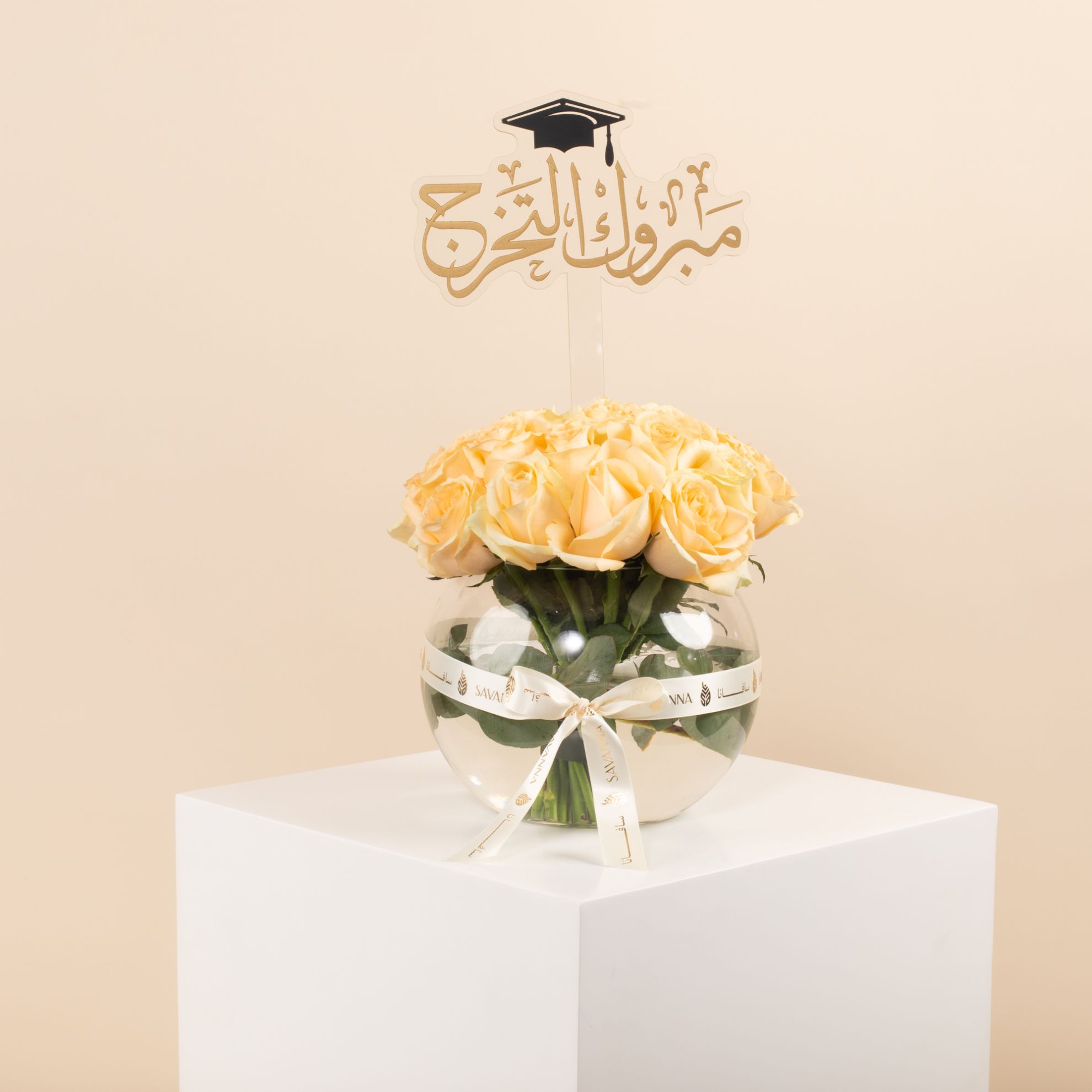 elebrate graduation with our Glass Vase containing 20 Peach Roses! This elegant arrangement symbolizes success, warmth, and new beginnings. A perfect gift to mark this special achievement with beauty and grace. Order now to make their graduation day truly memorable!