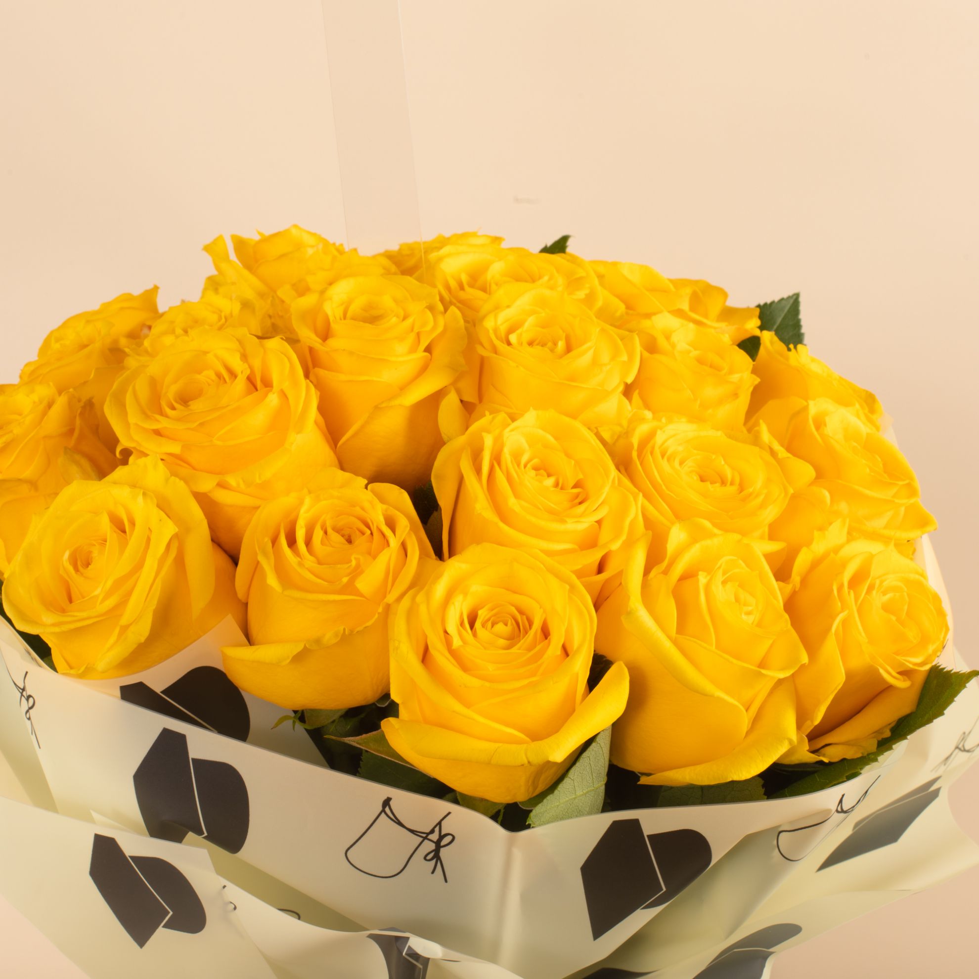 Brighten someone’s day with this cheerful bouquet of 25 yellow roses. A vibrant symbol of friendship, joy, and new beginnings — exclusively from Savanna.