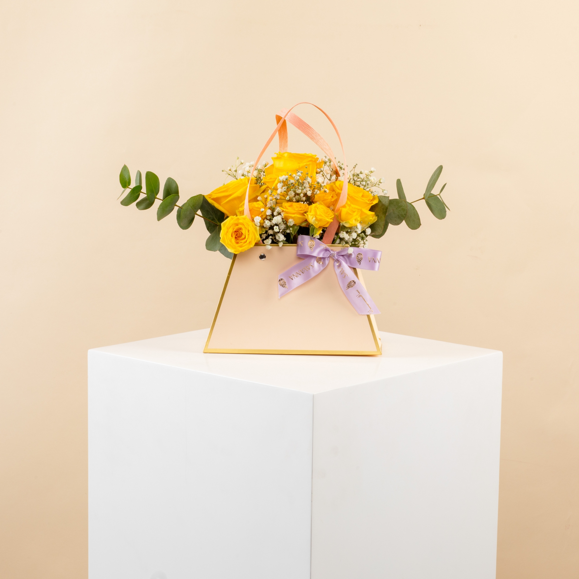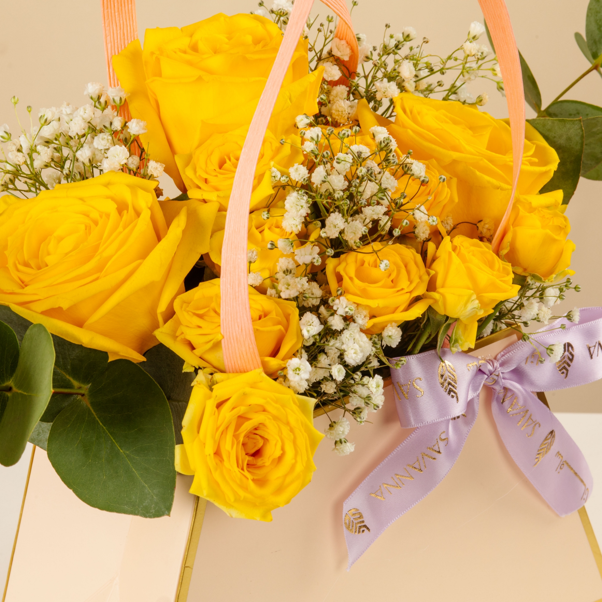 A cheerful blend of yellow roses, yellow baby roses, eucalyptus, and delicate gypso — the perfect gift to spread joy and sunshine. Now available on our e-commerce platform!