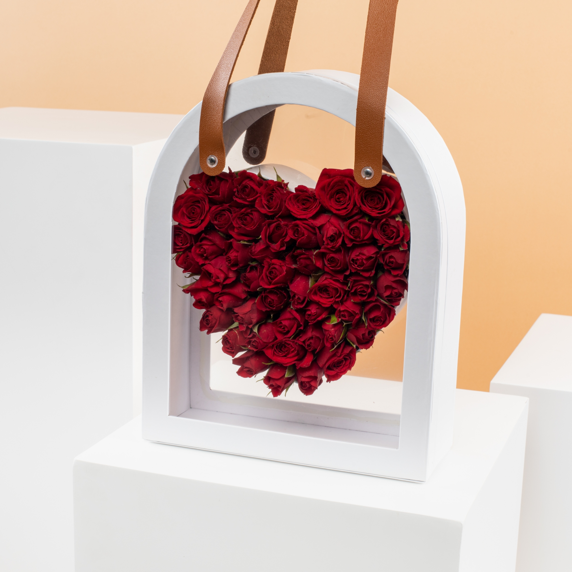 Surprise Your Special Someone With Savanna'S Flower Bag! Inside, You'Ll Find A Charming Heart-Shaped Arrangement Of Baby Red Roses—Perfect For Expressing Love. A Unique And Thoughtful Gift For Any Occasion. Order Now On Savanna And Make Their Heart Bloom With Love!